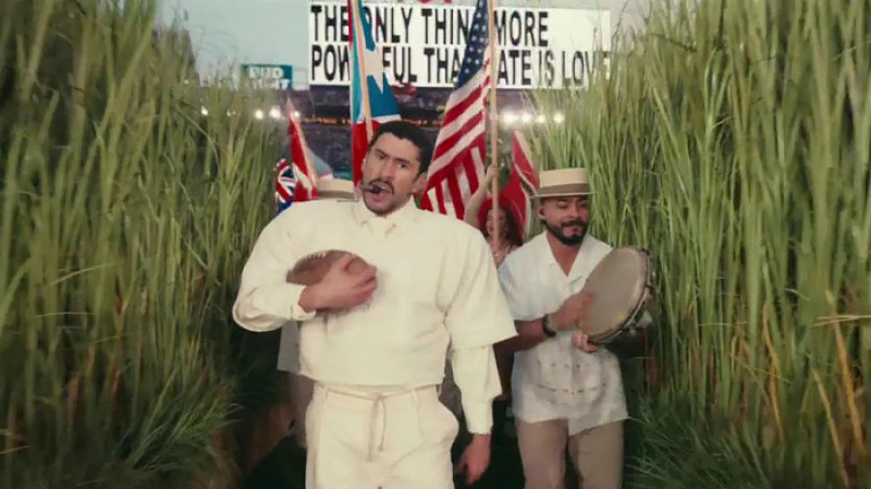 Ricky Martin a apărut pentru „LO QUE LE PASÓ A HAWAii”, în timp ce Bad Bunny a ridicat steagul Puerto Rico şi a interpretat „El Apagón”, stadionul fiind inundat de lumini înainte ca el să cânte „CAFé CON RON” şi să strige „Dumnezeu să binecuvânteze America!”, numind toate ţările de pe continent în timp ce se desfăşura o paradă a steagurilor.