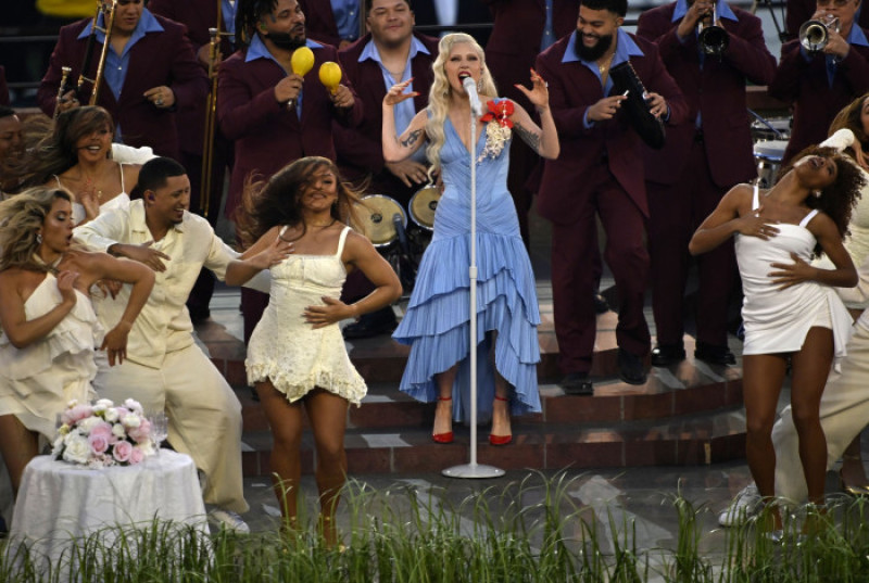 O nuntă înscenată cu iconicul La Rana Concho, care a fost difuzată pe ecranele stadionului, a pregătit scena pentru intrarea surpriză a lui Lady Gaga, supervedeta pop cântând o versiune salsa a piesei „Die with a Smite” înainte de a dansa cu el „BAILE INoLVIDABLE”.