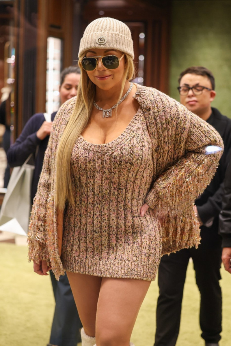 În imaginile apărute pe rețelele sociale, Carey, în vârstă de 55 de ani, poartă un body roz, peste care a asortat o rochie din tul și sandale cu tocuri înalte. Deși se mișcă cu dificultate pe scenă, ea zâmbește în permanență.