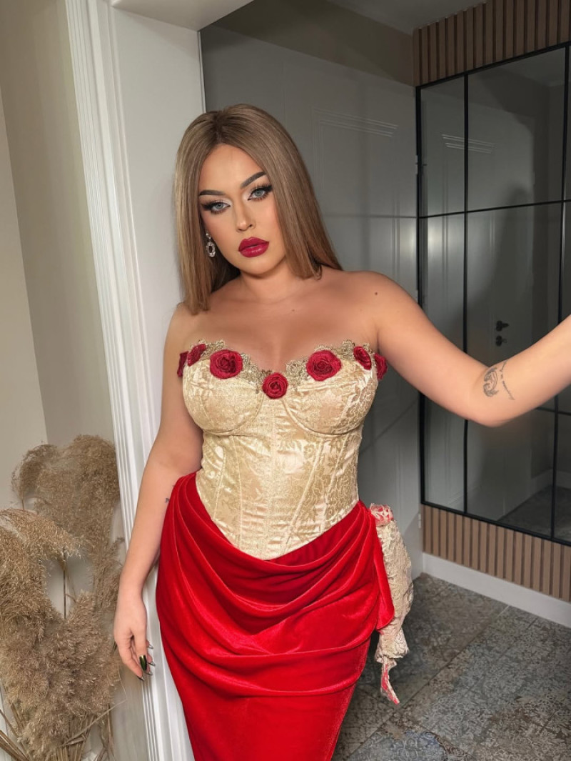 Misha a demonstrat din nou că rafinamentul și feminitatea merg perfect mână în mână. Artista a atras toate privirile într-un corset auriu spectaculos, cu detalii brodate și trandafiri roșii aplicați pe bust, un detaliu ce evocă romantismul clasic și, în același timp, o forță feminină magnetică.