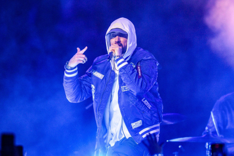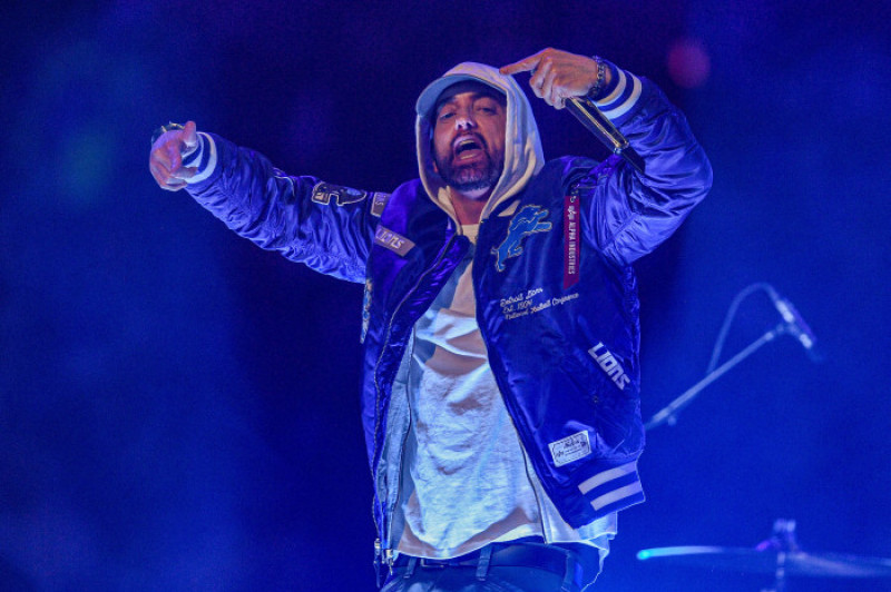 Îmbrăcat într-o jachetă Lions, Eminem (Marshall Mathers III) a apărut spectaculos pe o platformă pentru a interpreta hitul său din 2002, „Till' I Collapse”, care a fost combinat cu piesa „Hello Operator” a formației The White Stripes.